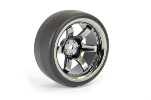 FastraxFASTRAX 1/10 DRIFT D1 TYRE W/9MM 6-SPOKE WHEEL- BK CHROME (4)