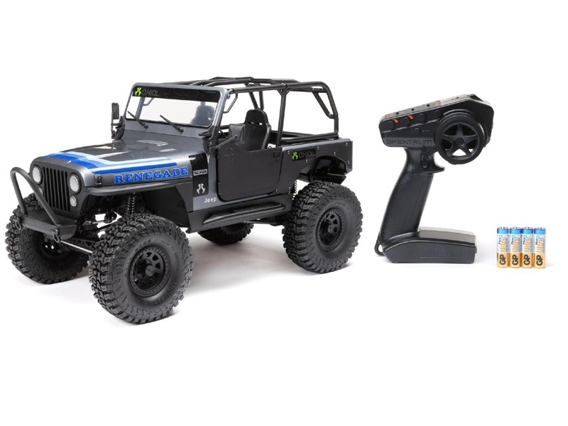 The SCX10 III Jeep CJ-7 arrives fully finished and ready-to-run with a factory-installed, brushed power system and Spektrum DX3 Smart transmitter. Just add your choice of 2-3S LiPo battery and charger. With a Spektrum Smart battery, you can take advantage of the radio system’s Smart technology capabilities — such as following your battery’s power status in real time right from the DX3 transmitter.