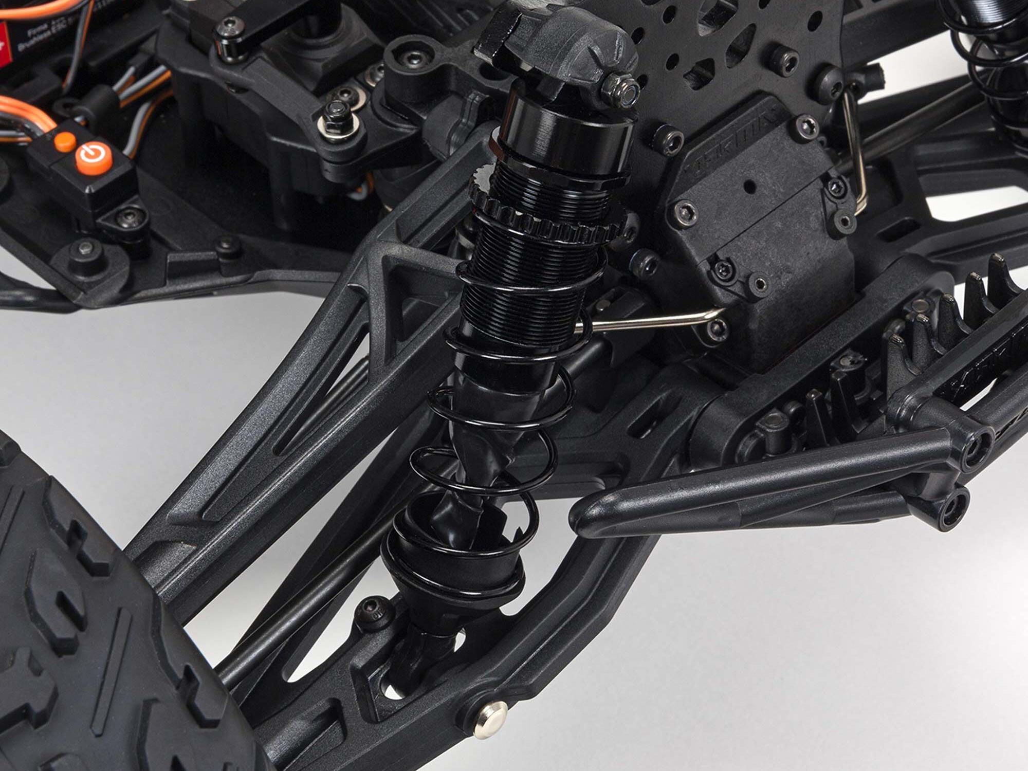 A mechanical handbrake, operated from the supplied Spektrum™ SLT3™ transmitter’s third-channel thumb switch, adds an extra dimension to the FIRETEAM™ driving experience. It’s a first for an ARRMA® off-road vehicle and allows the vehicle to perform evasive maneuvers and initiate drifts and handbrake turns.