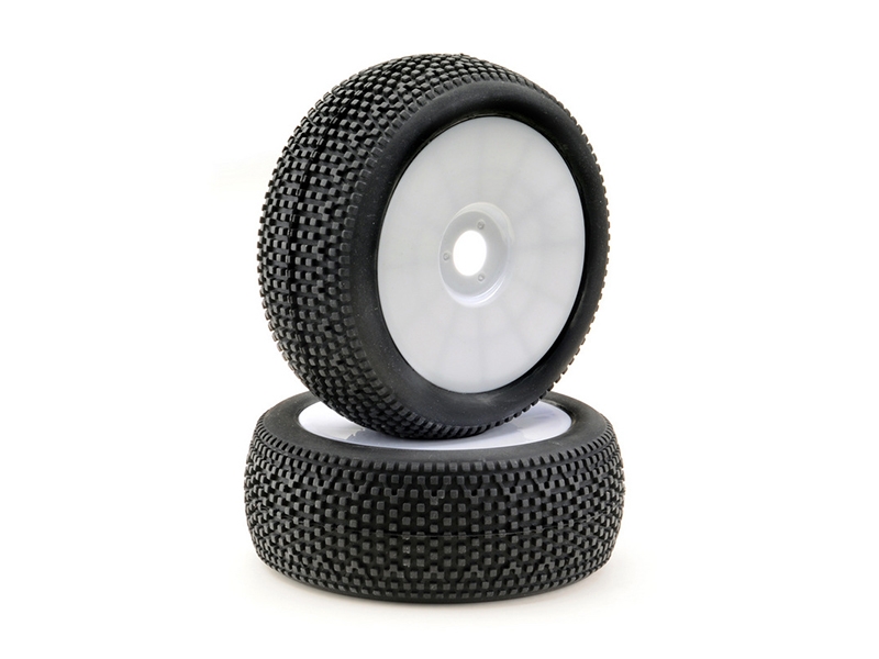 Absima 1:8 Buggy Disc Wheel and Tyre Set Mini Pin (2) – White 2520022