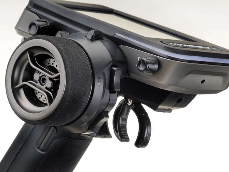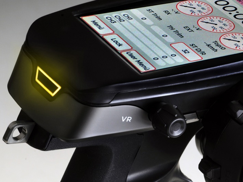 The large touchscreen provides all relevant information and impresses with clear graphics that tell you at a glance which steps are necessary and where you are in the menu. A wide variety of buttons are placed around the steering wheel for quick setting changes. These can be linked to all 9 channels and include all assigned functions. A 3-position switch on the right side of the steering wheel is ideal as an nitro engine killer to quickly turn off the engine when needed.