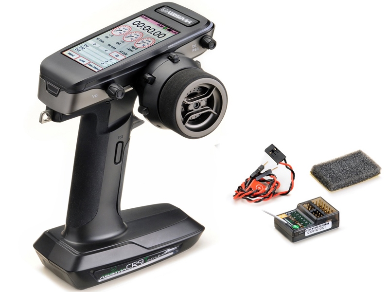The Absima CR9T remote control uses the latest 2.4 gig high performance chip for impressive performance and supports fast 2-way telemetry. Thanks to the core technology, power consumption is extremely low. It also enables enormous ranges as well as stable, high-speed transmission (FHSS). The product was developed by a highly professional team that focused on an outstanding design-quality-price ratio. The result is the extremely comprehensive CR9T transmitter with 9 channels controlled by the large illuminated color touch screen. This provides all the necessary information to ensure you get the most out of it. In addition, there is a compact 9-channel receiver (R9GPS), which also has an ext. volt and GPS connection.