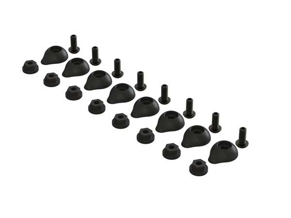 Precision molded composite body protector sits on the body surface, the protector nut sits on the underside. These parts are screwed together with the supplied M4 screws – Prevents wear to the bodyposts from upside-down sliding on hard surfaces – Supplied in a set of 8