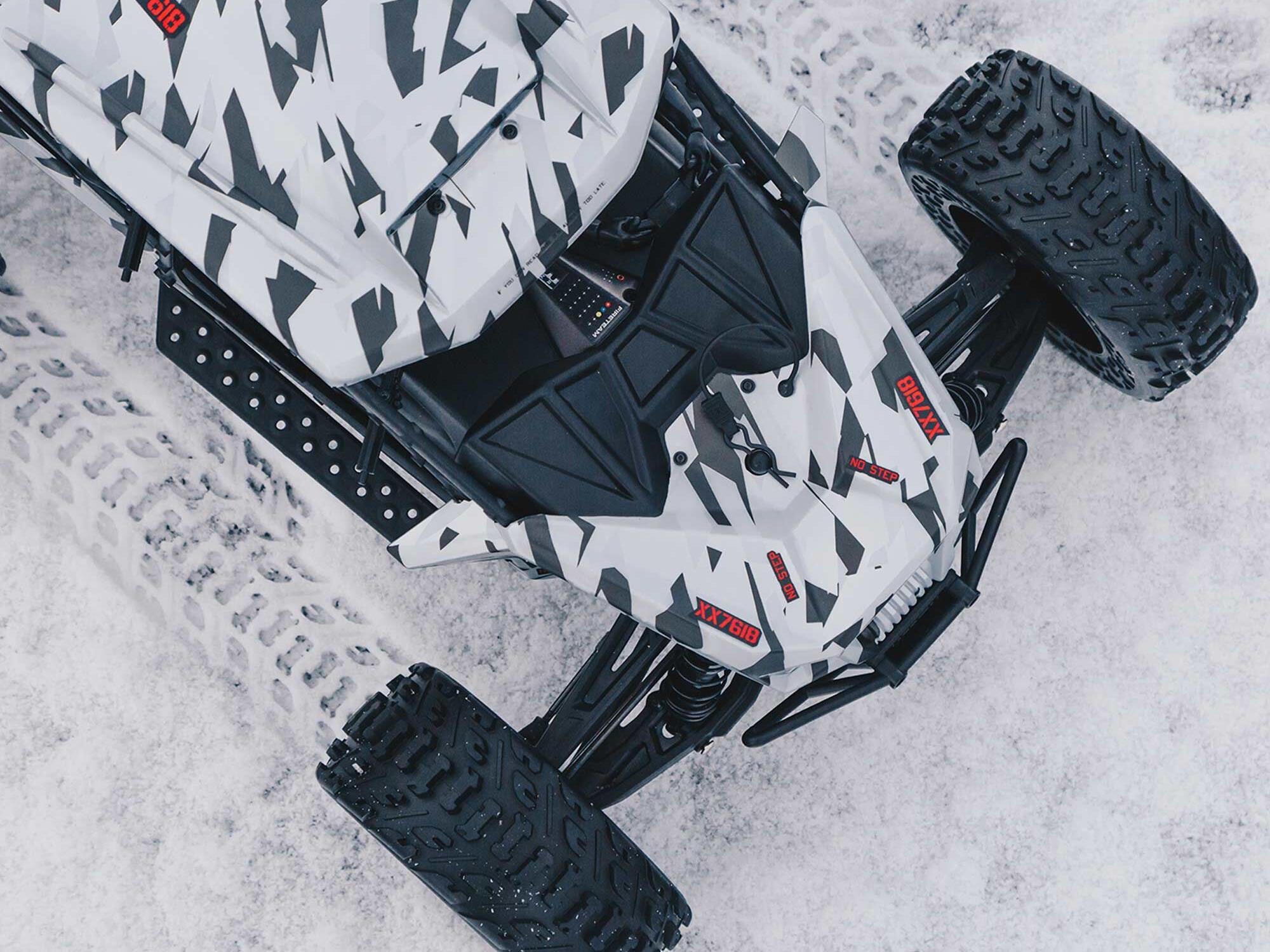 With one look it’s clear that the FIRETEAM™ 4WD Speed Assault Vehicle has no equal. Out of the box, the multi-panel body comes factory-finished in your choice of matte black or matte white camouflage color schemes. A full roll cage adds to the military-style looks and toughness. The detailed interior carries a four-man FIRETEAM™ crew. It all rides on a special wheel and tyre package, featuring multi-terrain dBoots® FIRETEAM™ tyres for high traction and smooth travel over rough off-road tracks.