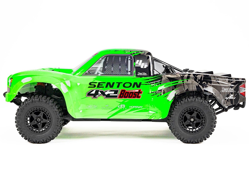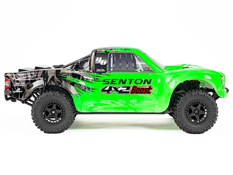 Contributing to the SENTON 4X2 BOOST short course truck’s unstoppable performance are a strong composite chassis; steering with more clearance for stones; a castellated slipper pad and sliding gear mesh; and rubber-shielded bearings throughout. Extended height dirt defenders limit the amount of dirt and debris that can get into the chassis tub.