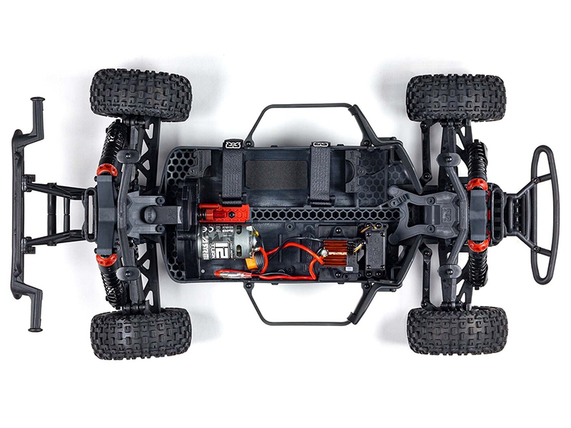 The included Spektrum SLT2 transmitter is perfectly balanced for fatigue-free bashing and has a foam wheel for precise fingertip control. New bashers can set the throttle limits at 50% or 75% until ready to use the full speed potential.