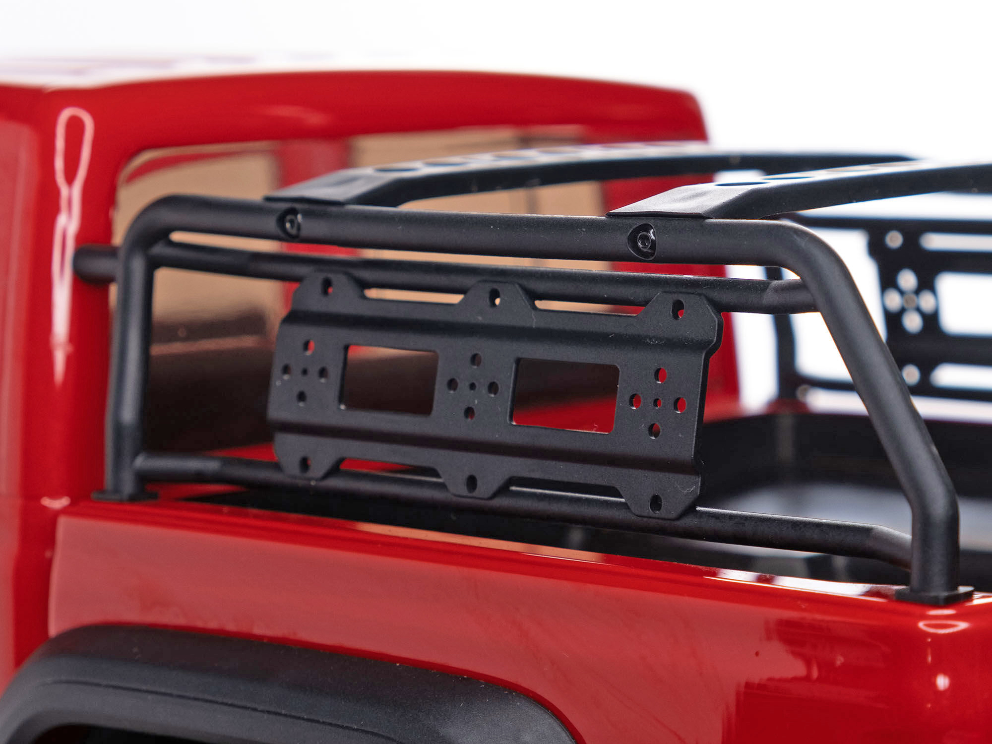The scale Jeep® JT Gladiator body mirrors its full-size counterpart with many highly authentic details. In addition, the body has over 20 injection-moulded parts including a bed rack, door handles, mirrors, hood vents and more — taking polycarbonate body realism to the next level.
