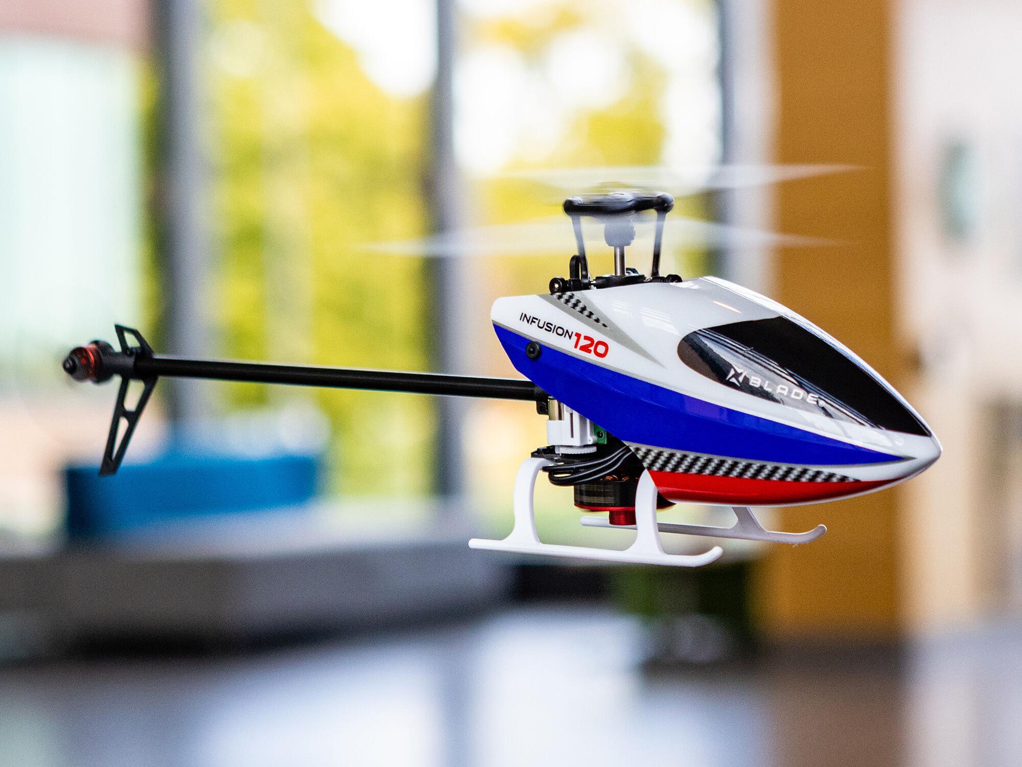 Larger than a micro-class machine, the InFusion 120 is great for outdoor flight in low wind, yet it’s still small enough that it can be flown in a variety of indoor spaces.