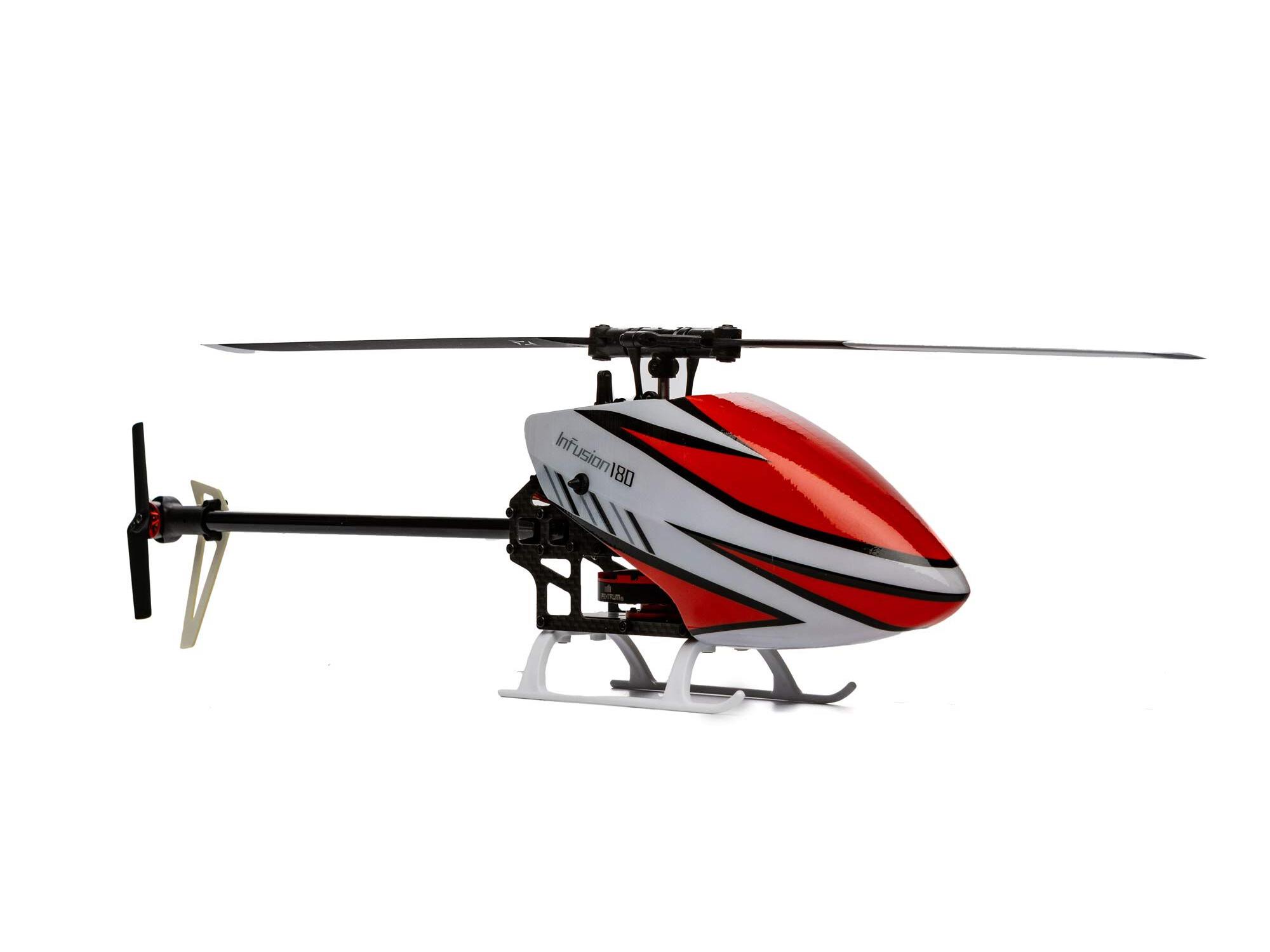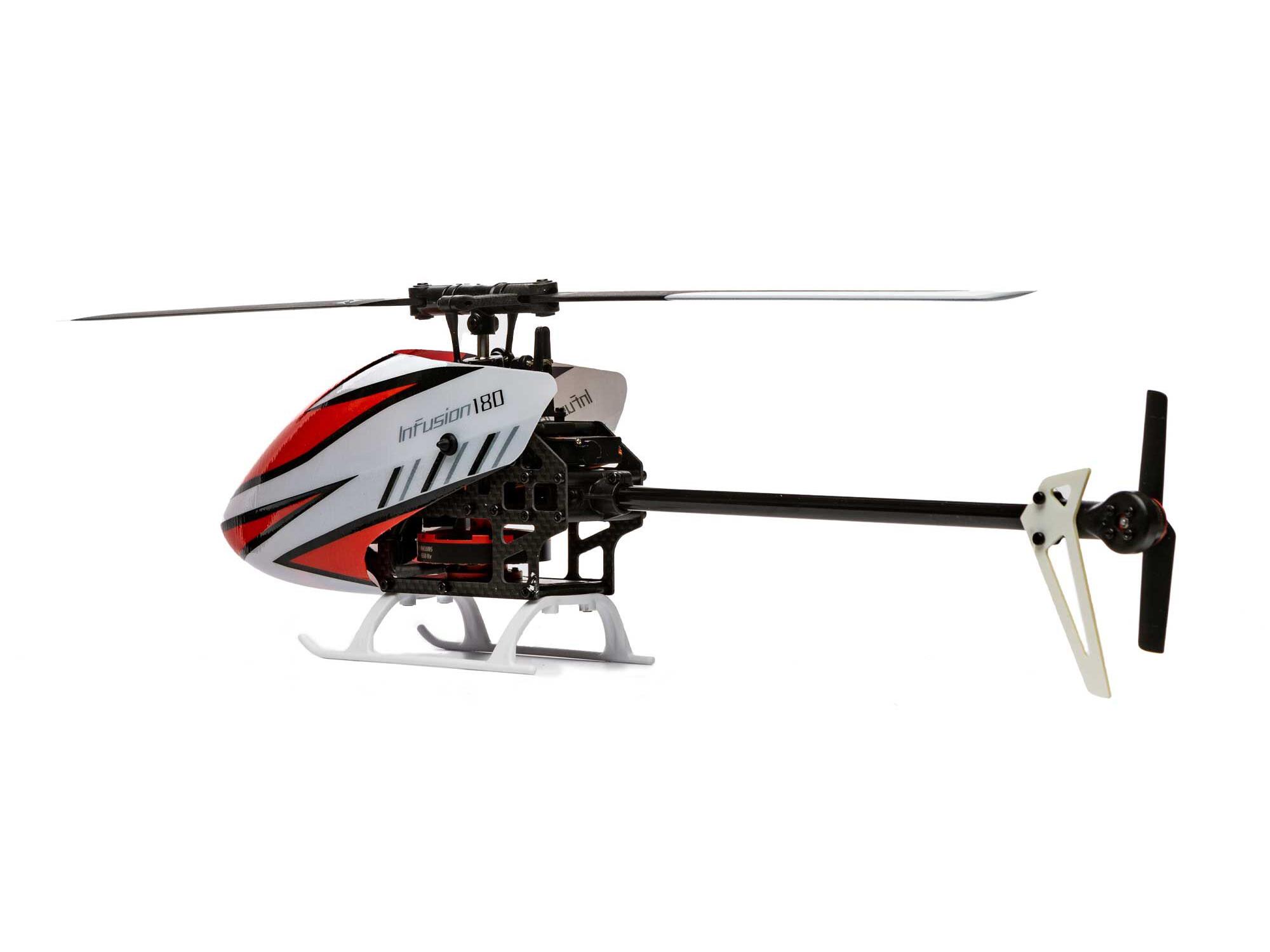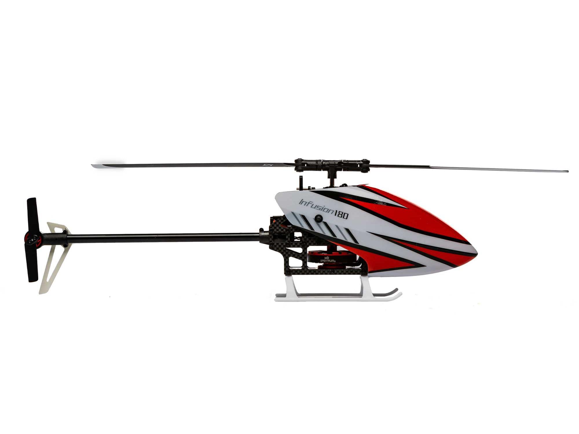 The Blade® InFusion 180 is a new design from the Blade team engineered for next-level durability and performance. Featuring an oversized direct-drive power system, no gears are driving the main rotor, allowing for instant power and lower parts count. For those looking for high performance in a small size, the InFusion 180 packs a punch perfect for thrilling backyard aerobatics. The InFusion 180 is easy to see while tearing up the sky with a one-piece canopy, bright white tail fin, and main landing gear. Featuring the latest in Spektrum™ Technology, it is equipped with the micro AR6251MHX Flight Controller that is expertly tuned out of the box yet remains adjustable for pilots to fine-tune the aircraft to their flying style. Also, a Spektrum Smart Avian™ ESC offers precise head speed control for a high-performance flight that doesn’t lag. Additionally, an innovative fusion of carbon fibre, ABS plastic, and aluminium components delivers outstanding rigidity and durability. With BNF® Basic convenience, all you have to do is add a 3S 600mAh battery, bind your 6+ channel Spektrum DSMX® transmitter, and take it to the skies.
