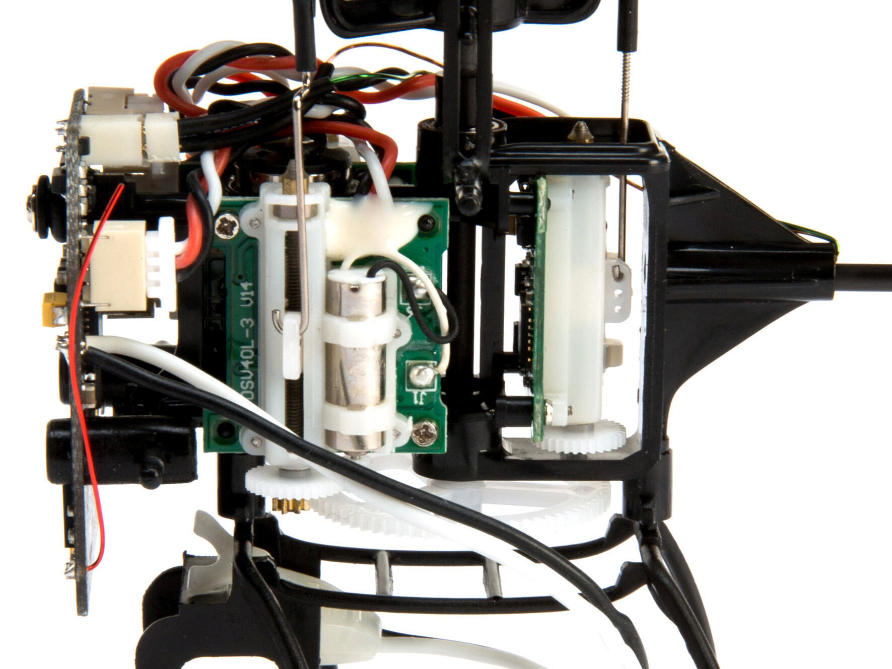 A new flight controller comes totally re-tuned from the ground up improving AS3X® stability, an improved SAFE® mode with angle demand, and an improved panic recovery. On top of that, the SAFE Z altitude control utilizes the on-board accelerometer to keep the heli at a consistent altitude. With its vertically mounted flight controller, it significantly improves damping and removes vibration to the gyro. What you get is a heli with incredible control and performance and the ability to execute dazzling 3D maneuvers. Linear servos deliver the muscle for impressive control authority while the 45C LiPo flight battery produces efficient power for 3D flight.