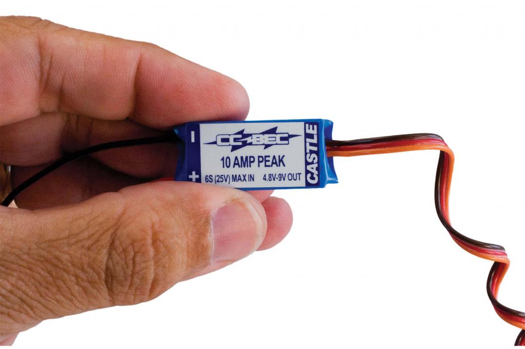 Battery Eliminator Circuits are small devices that eliminate the need for a receiver and servo battery pack. They draw higher voltage from the motor batteries and drop it to a voltage level that is suitable for your receiver and servos. This is required in applications which draw high power for multiple servos or use more than 3S motor packs, as most ESCs with linear BECs are not designed for these applications. NOTE: CC BEC should never be operated in series or parallel with another BEC or backup receiver pack connected to the RX/Servo side of the circuit.