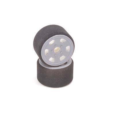 Now include cool looking disks are glued by the customer on the external face of the wheel to protect the foam from the high rigours of oval racing.