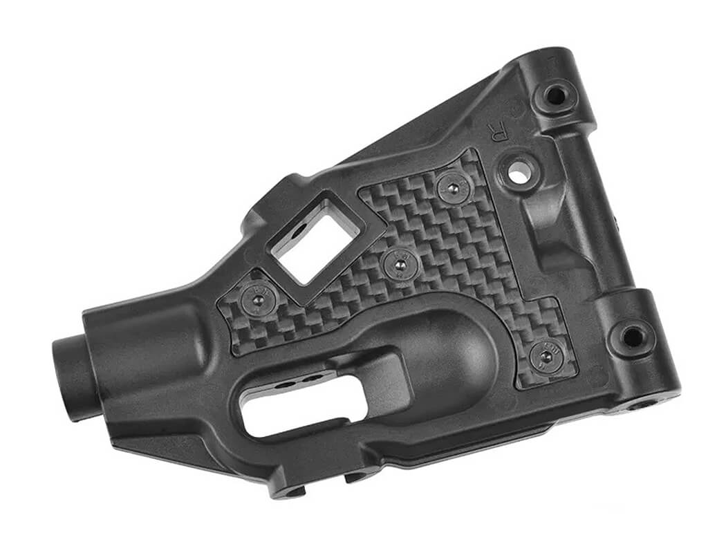 - Graphite Shock Towers: Aerospace-grade carbon fiber provides exceptional rigidity and optimized mounting points for shock absorbers and camber links.