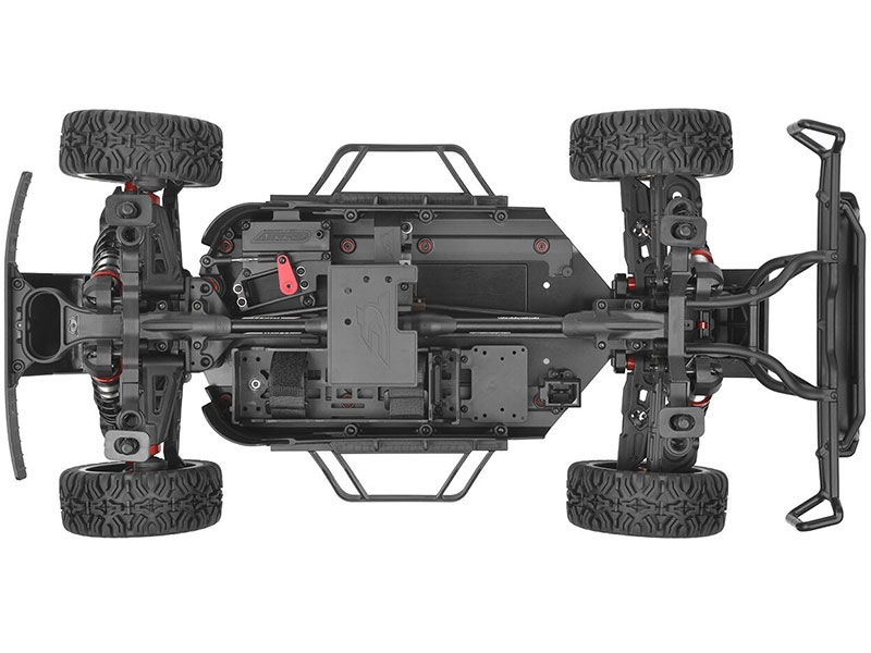 SHIROI isn’t just fast, it looks amazing! From the molded roll cage interior and roof rack to the realistic front and rear bumpers, every detail was designed to reflect real-world short course racing. The pre-cut body features aggressive styling and open wheel arches, giving SHIROI its unmistakable off-road identity. Custom Mudclaws SC tires on black multi-spoke wheels deliver excellent grip and scale-correct visuals, whether you’re powering through dirt, gravel, or jumps.