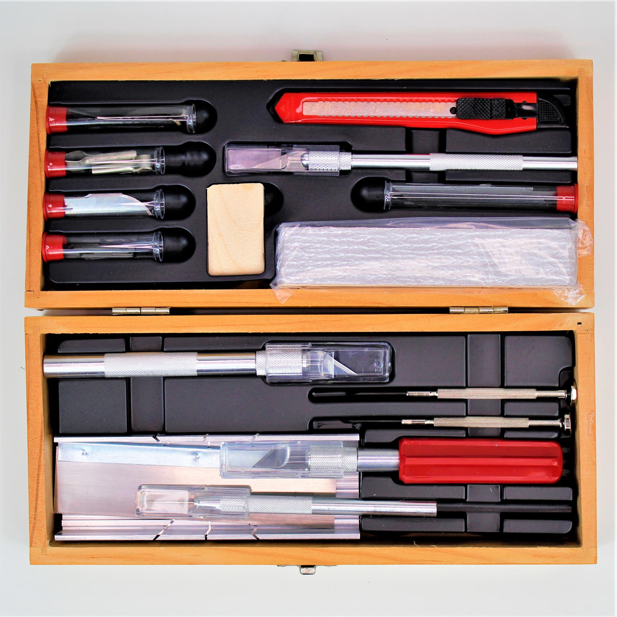 This Deluxe Knife the Tool Chest is the perfect gift idea for hobbyists, artists, designers, or those with interest in arts and crafts applications – wood carving, scrapbook making, model kits, and more.