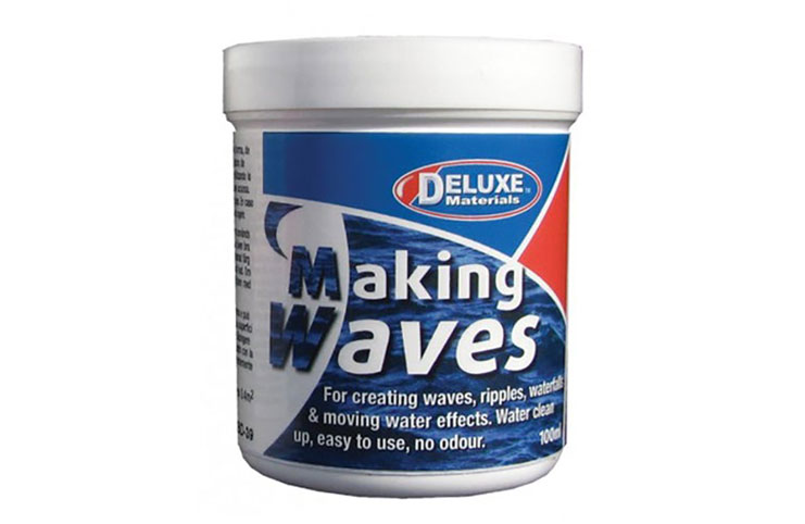 The Deluxe Making Waves 100ml S-SE110 is For creating waves, ripples, waterfalls and moving water effects. Making Waves is a 1-part, clear setting, water based low odour resin that holds its shape, even on vertical surfaces.