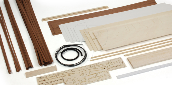 This kit is very similar in construction to our 19′ Racing Runabout, kit #1249, in that it utilizes the popular expanded PVC and mahogany double planking method. The new 16′ hydroplane kit includes all the items you have come to expect from a Dumas kit. Step-by-Step instructions, flag, decal, chrome plated fittings and laser cut parts which we started using in our #1249 Racing Runabout kit.