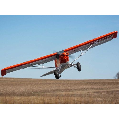 Articulated and shock-absorbing landing gear, equipped with even larger oversized tundra-style wheels with softer tires, offers better ground handling that soaks up the bumps of rough surfaces. The push-button released, top-mounted hatch offers convenient and easy access to the battery compartment – which now holds a quick-release, multi-position battery mounting tray that fits 4S to 6S 3200–7000mAh batteries. An improved motor design featuring an additional bearing, plus a propeller molded from material that better maintains balance and stiffness, results in smoother and more reliable power system performance. The composite-reinforced, hollow-core airframe arrives mostly factory-finished and assembled, and the installed digital, metal-geared servos with ball-link equipped linkages deliver crisp and precise control.