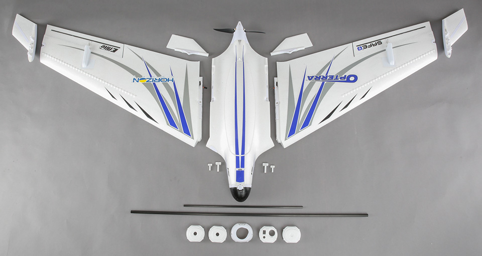 The OpterraT 2m flying wing is the collaborative effort of George Hicks and Mike McConville – two of model aviation’s premier aircraft designers. Together, they have created some of the best flying RC airplanes in the world. This one is no exception. Its lightweight construction, long wingspan and efficient aerodynamics give it a wide range of capabilities that includes everything from sport aerobatics to soaring. It even gives you the ability to put yourself in the pilot’s seat with FPV gear while using a GoPro Hero 3, Hero 4 or similar class camera to record HD video at the same time.* This Bind-N-Fly⌐ version comes with the added benefit of a SpektrumT AS3X⌐ receiver that features optional SAFE⌐ Select technology.