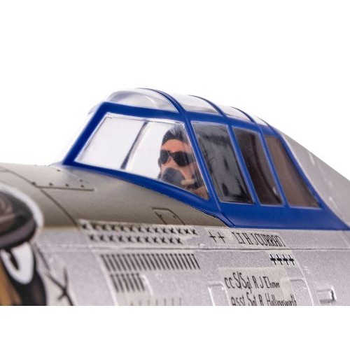 The lightweight yet durable, composite-reinforced and fully-molded EPO airframe is equipped with an abundance of scale detail including panel lines, a pilot figure and more. It also includes an optional-use drop tank, bombs and rocket launchers that are quick and easy to install/remove without glue or tools.