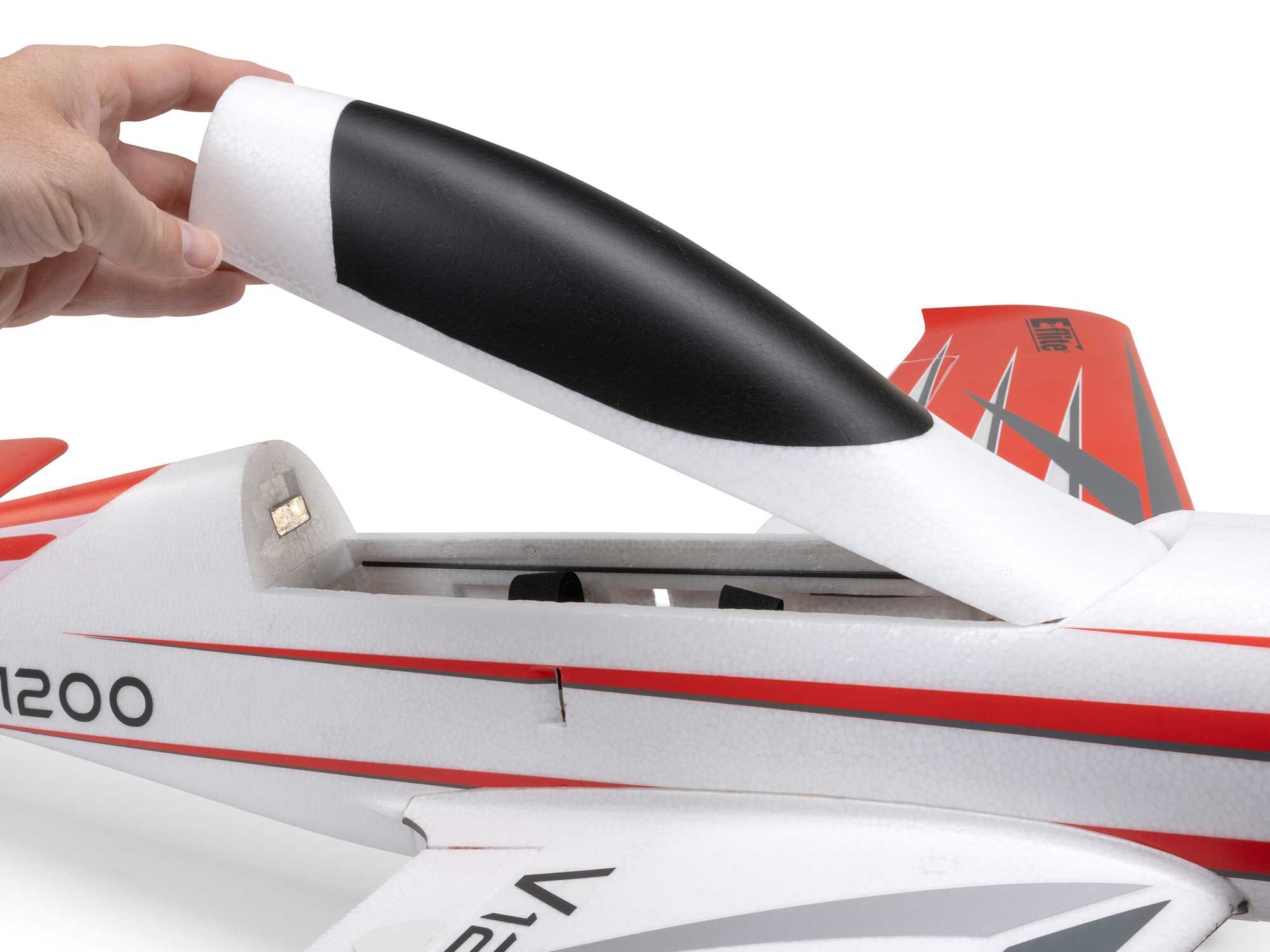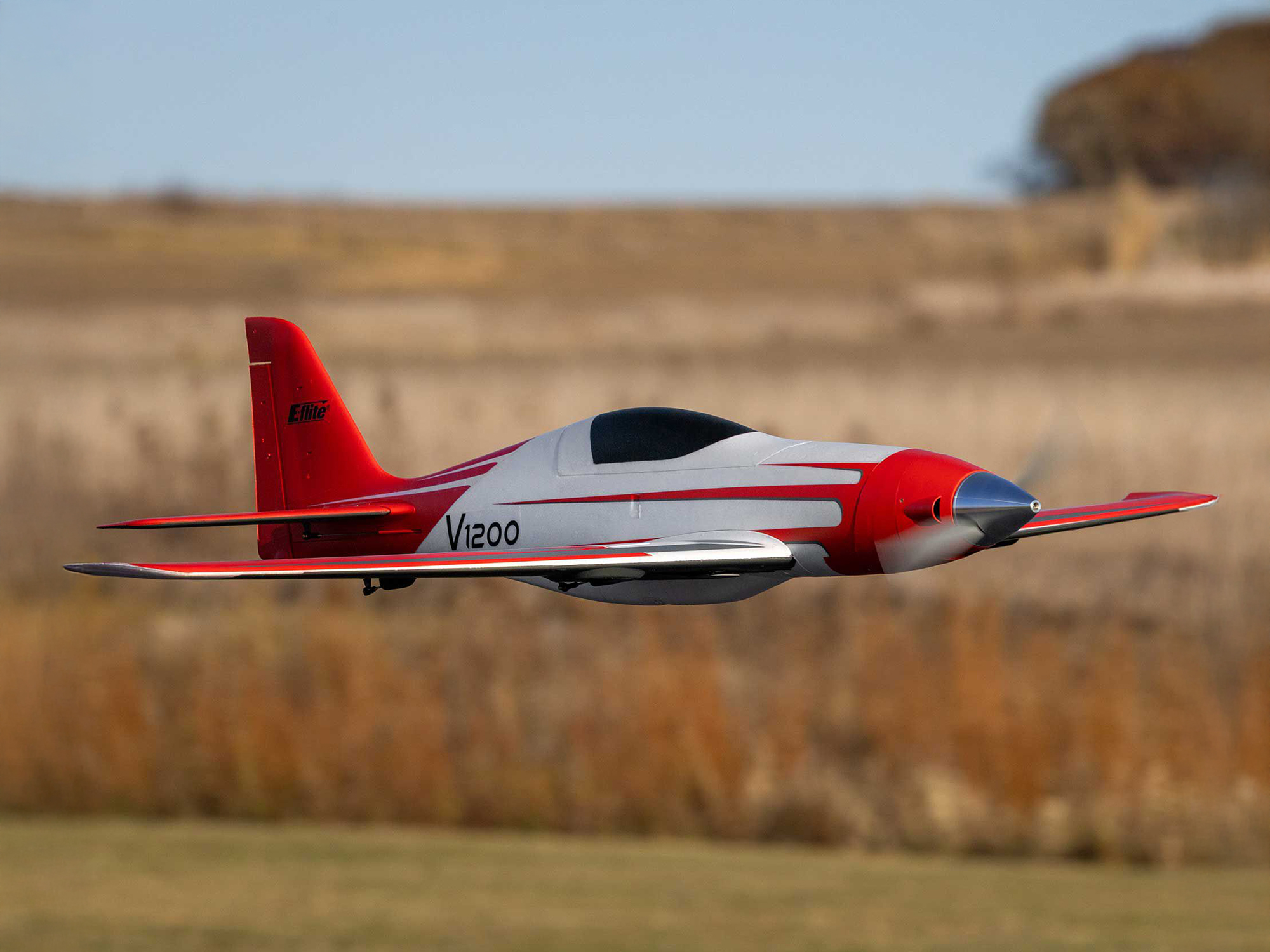 Grab the sticks to fly the fastest prop-driven E-flite airplane yet! With 4S 3200-5000mAh batteries and the factory-installed brushless power system, the V1200 reaches up to 110+ MPH in level flight- making it suitable for intermediate pilots with some high-speed flying experience. Or more experienced pilots can unleash level-flight top speeds up to 140+ MPH with popular 6S 3200-7000mAh batteries! The Spektrum Avian 100A Smart ESC lets you speed with confidence, knowing all is well with the power system and battery from the real-time telemetry data sent via compatible receivers (such as the BNF Basic version’s AR637TA+) to Spektrum AirWare-equipped transmitters.