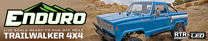 The Enduro Trailwalker 4×4 comes ready for adventure right out of the box with performance-driven Reedy Power electronics. The all-new, ultra-smooth, and powerful 16-turn, 5-slot brushed crawler motor and Reedy Power SC400X electronic speed controller with T-plug connector supply ample power to this tough rig. Controlling the beast on the trail is our new 3-channel XP130 2.4GHz radio and Reedy Power high-torque 1320MG metal-gear servo.