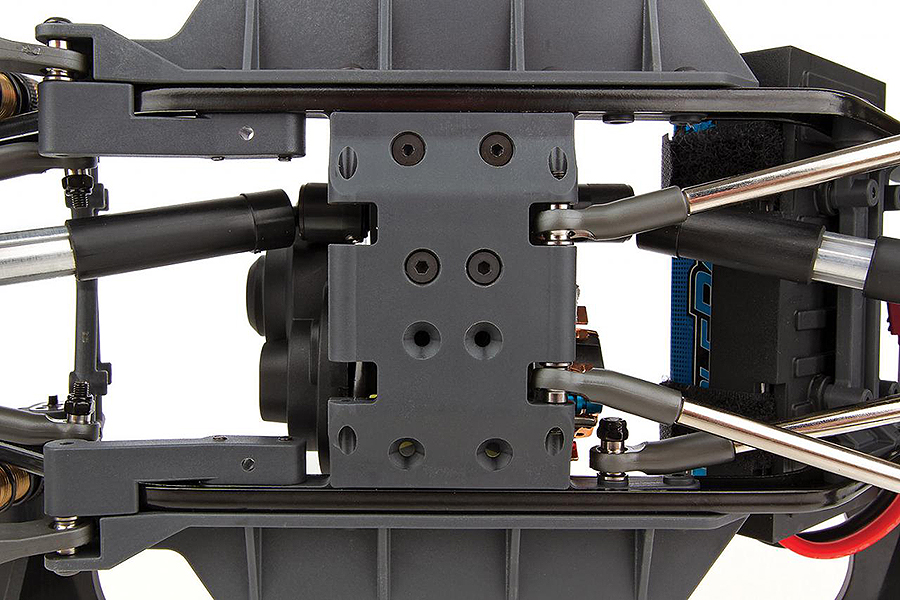 What makes the Enduro Gatekeeper kit special? The all-new Gatekeeper Suspension package (GKSTM)! This package consists of rear trailing arms that move the shocks forward, allowing a larger window for shock tuning and providing improved weight bias. The trailing arms are paired with a rear anti-roll bar for a more stable and consistent suspension when crawling on the rocks. An adjustable aluminum track bar mount firmly bolted to the chassis rail gives the Enduro GK more reliable and responsive steering without the flex. Our shock mount inserts with multiple mounting positions allow for precise suspension tuning whether it’s moving the shocks up, down, forward, or back.