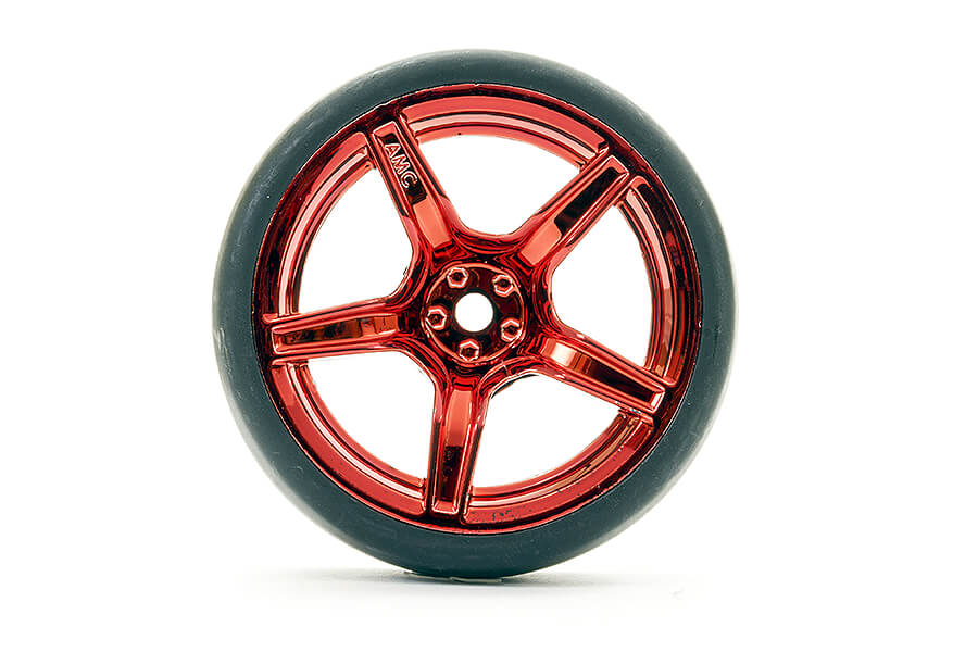 FASTRAX 1/10 DRIFT D1 TYRE W/3MM 5-SPOKE WHEEL- MET RED (4)