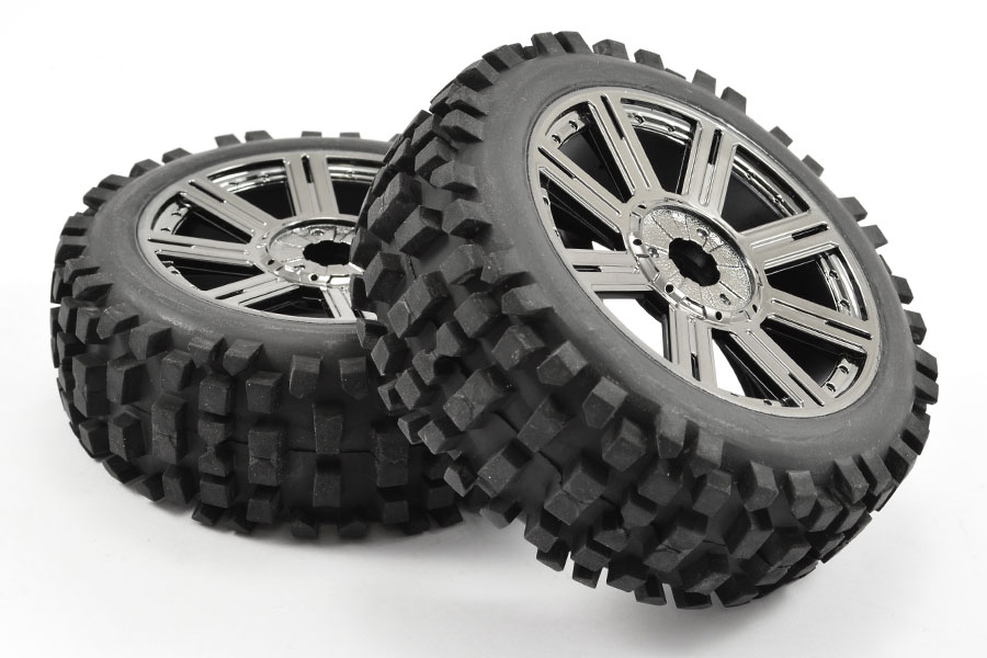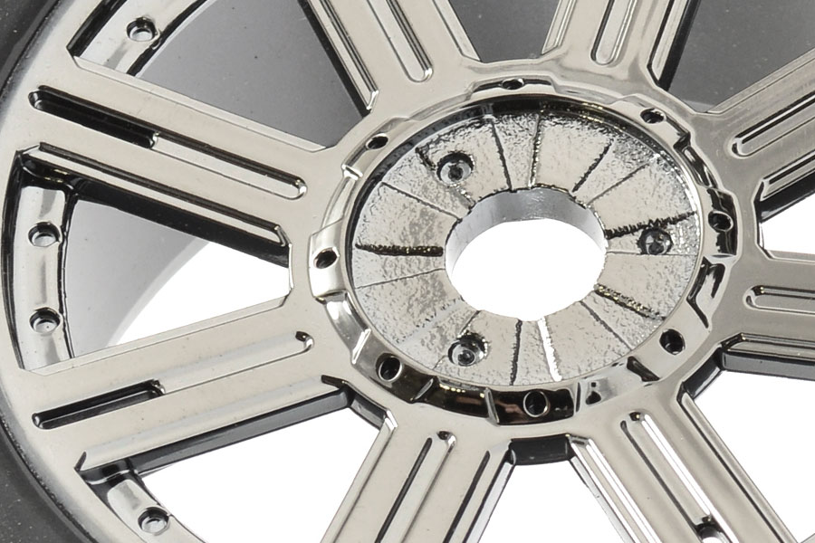 FASTRAX 1:8 ROCK BLOCK MOUNTED ON 8-SPOKE BLACK CHROME (PR)