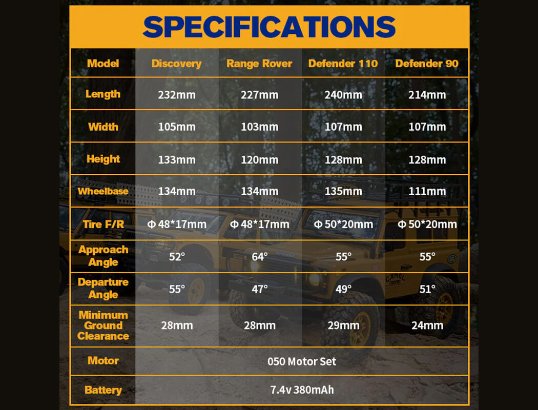 Officially licensed by Land Rover, FMS presents the 1/24 scale FCX24M Land Rover Family RC cars. Featuring the newly developed FCX24M realistic crawling chassis and meticulously crafted hard-shell bodies, these models faithfully replicate the classic appearance and off-road performance of the first-generation Range Rover, Discovery, Defender 90, and Defender 110 as featured in the Camel Trophy competitions. These models revive the epic history of the past. We welcome you to experience the Land Rover RC family.