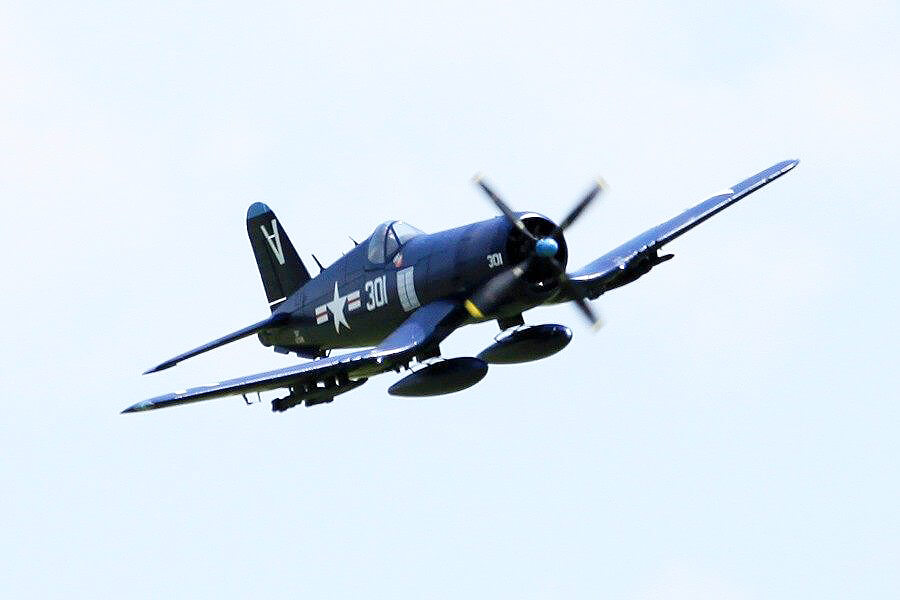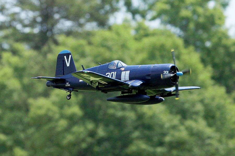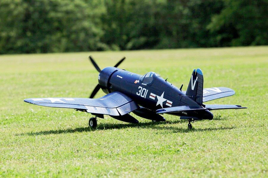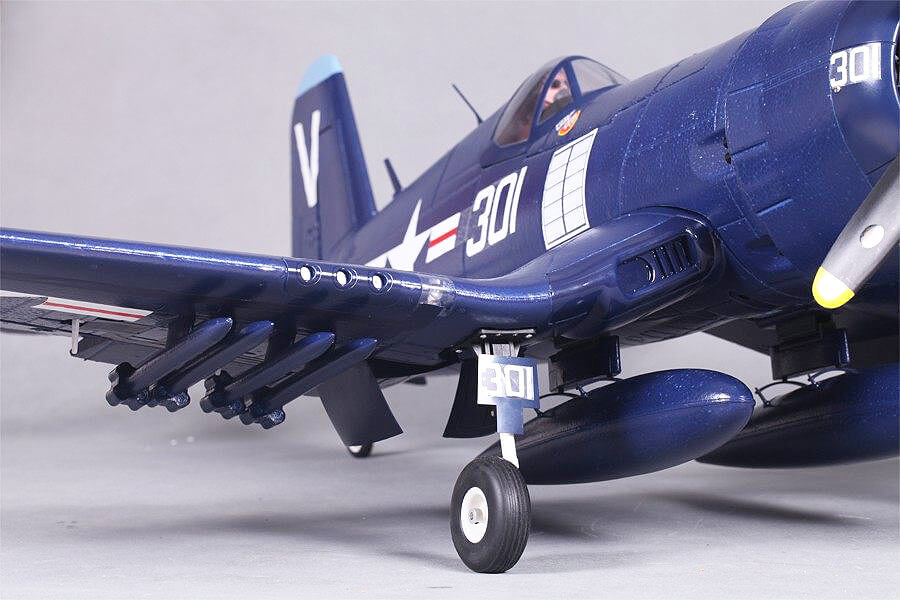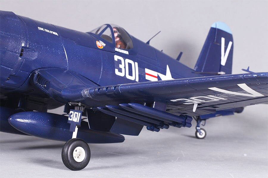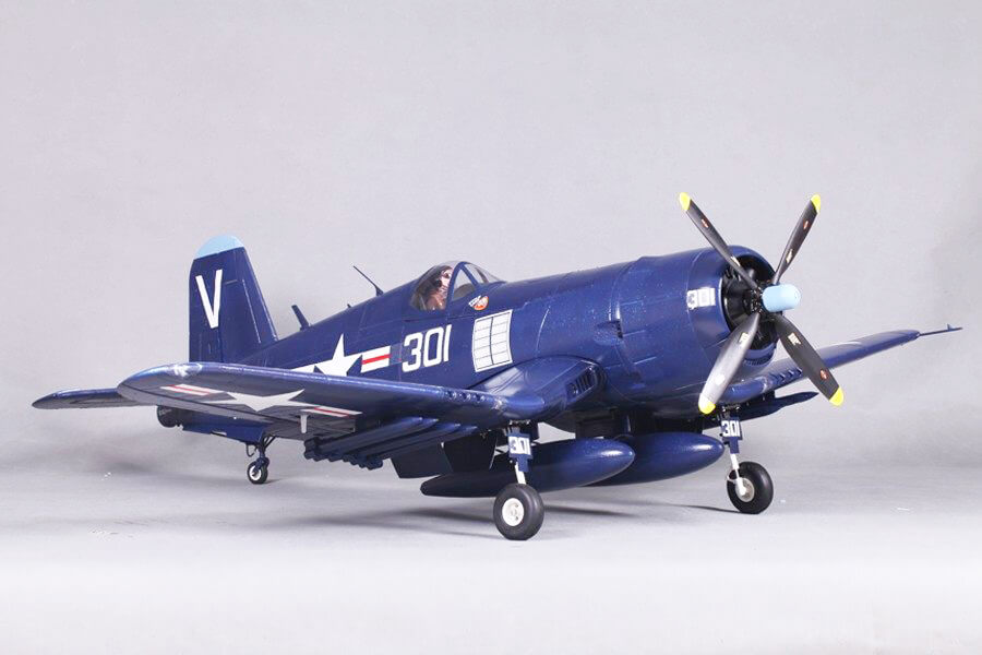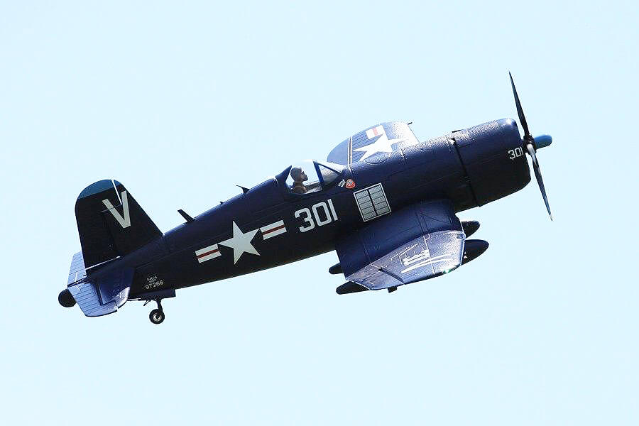 The FMS F4U-4 Corsair is a remarkably scale tribute to this warbird icon that’s a blast to fly. Sporting a pair of 90 degree rotating retractable landing gear, fully functional split flaps, and it’s powerful motor turning a scale like 4 bladed 14X8 prop, gives you all you need for slow gentle landings to high-speed strafing runs and spirited sport aerobatics.