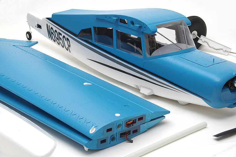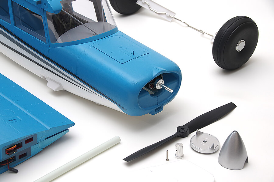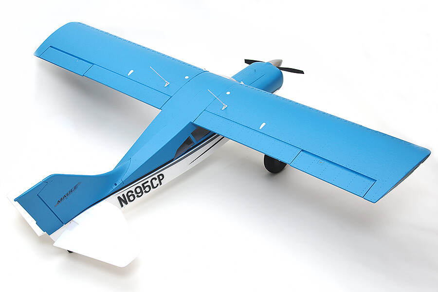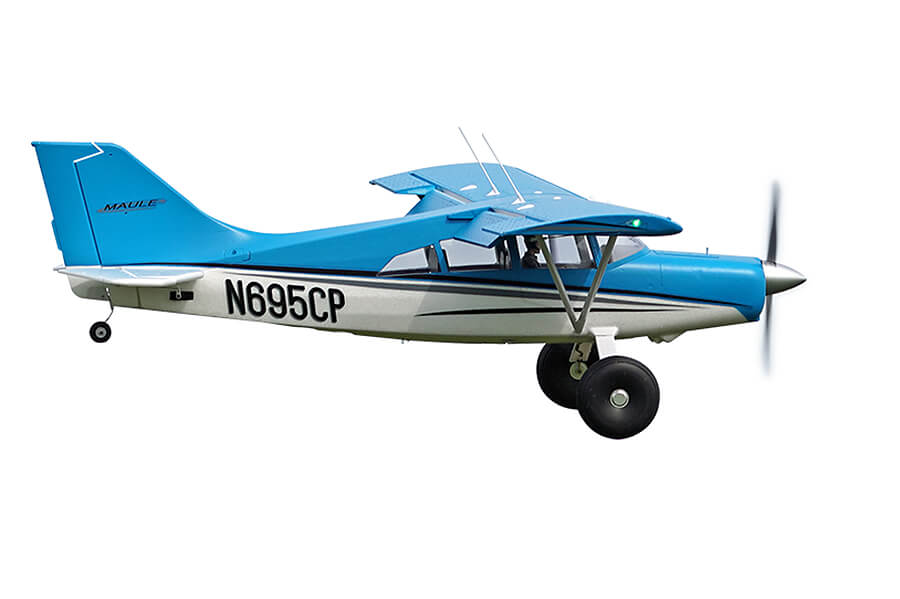 Maule can be equipped with two sets of landing gear – a tyre set and a float set, for conquering any terrain year-round. The pre-installed 3S/4S compatible brushless power system delivers plenty of performance for flying from smooth or rough surfaces using the oversized wheels, or from water using the included float set.
