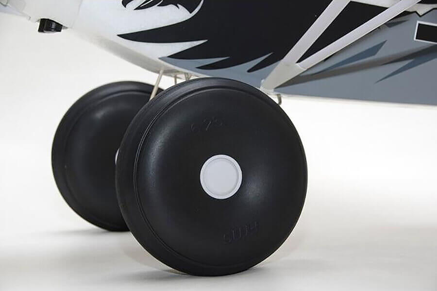 Thanks to its functional flaps, high-lift airfoil, rugged landing gear and oversized pneumatic rubber tires- the 1300mm PA-18 Super Cub has impressive short take-off and landing (STOL) performance, allowing it to operate from just about any terrain.