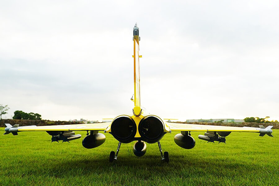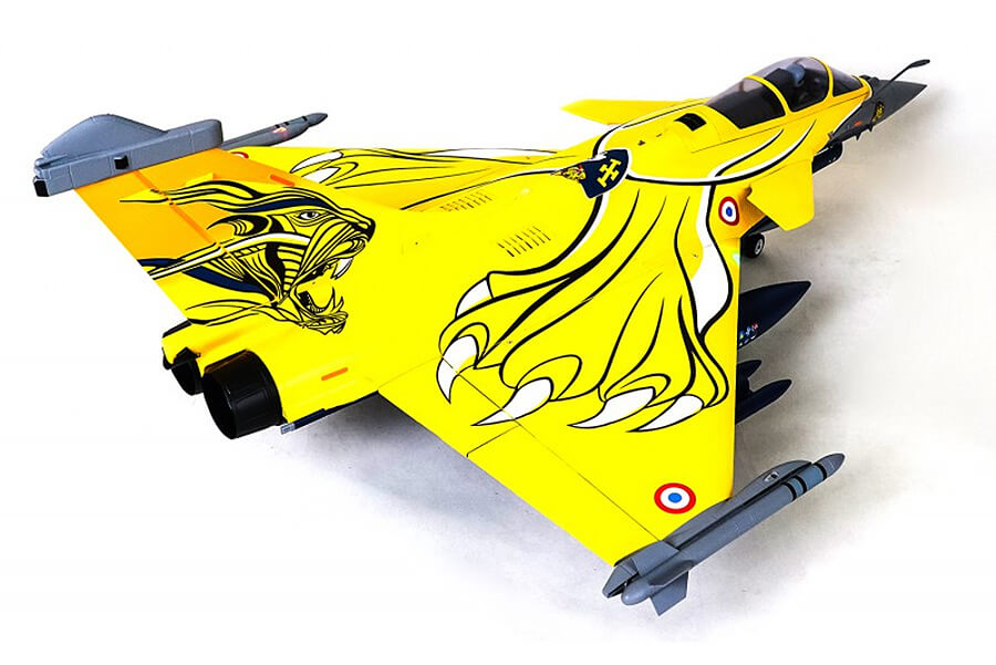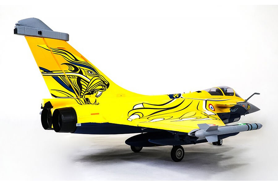 Developed to replicate both the looks and performance of the real aircraft, FMS has dedicated it’s decades long experience into designing the 80mm Rafale. Details such as the pilot, cockpit interior, panels, removable armaments, auxiliary fuel tanks, refueling probe, targeting sensor etc; dynamic features such as functional LED navigation and landing lights, CNC shock-absorbing electric retracts, functional canards and flaps etc.