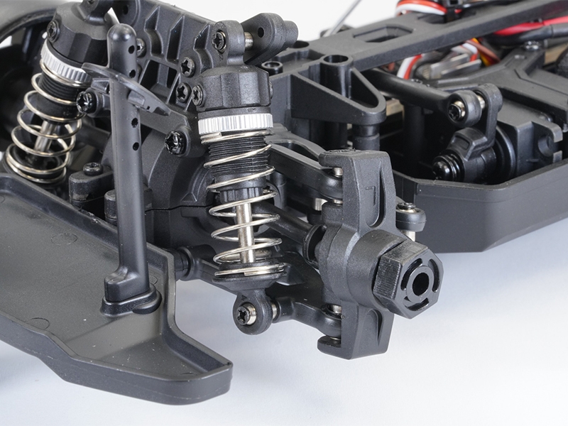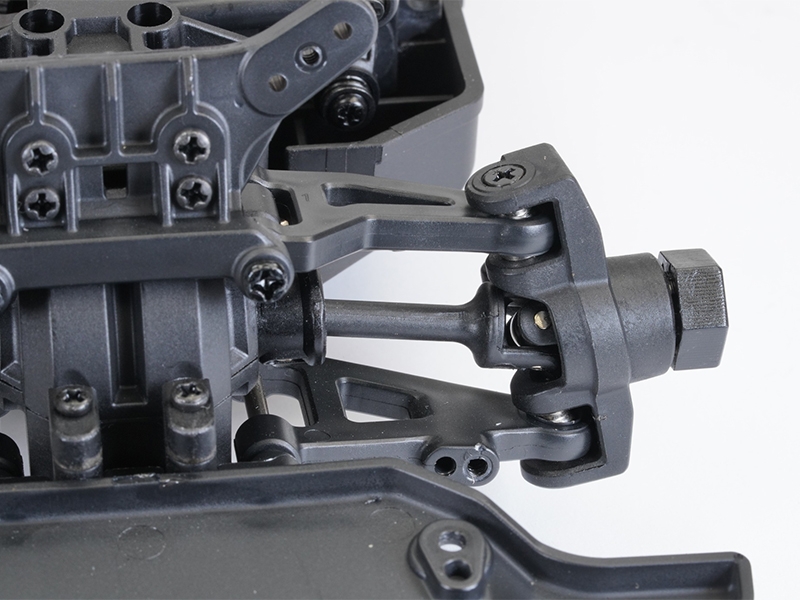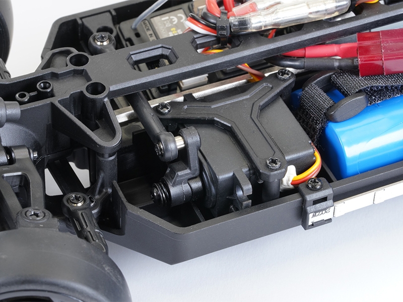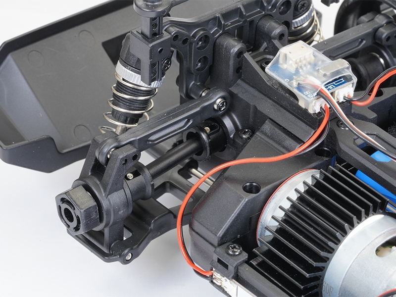 A fully proportional throttle and steering servo provide smooth and ac curate control, while a shaft driven 4wd drivetrain, front and rear geared differentials, all supported by precision ball bearings handle the power from the 390 sized brushed motor and 2S 7.4V Li-Ion battery pack.