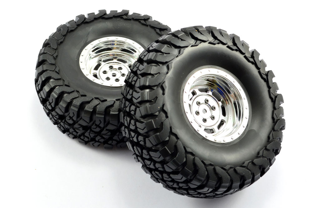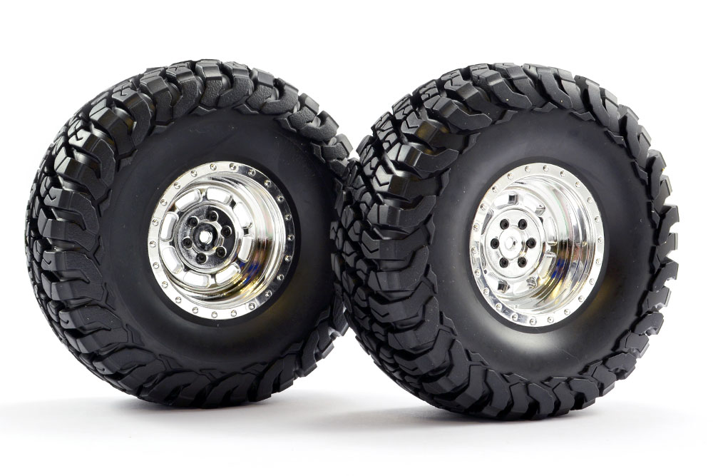 FTX MAULER 2.2″ ALL TERRAIN TYRES PRE-GLUED ON CHROME WHEEL (2)
