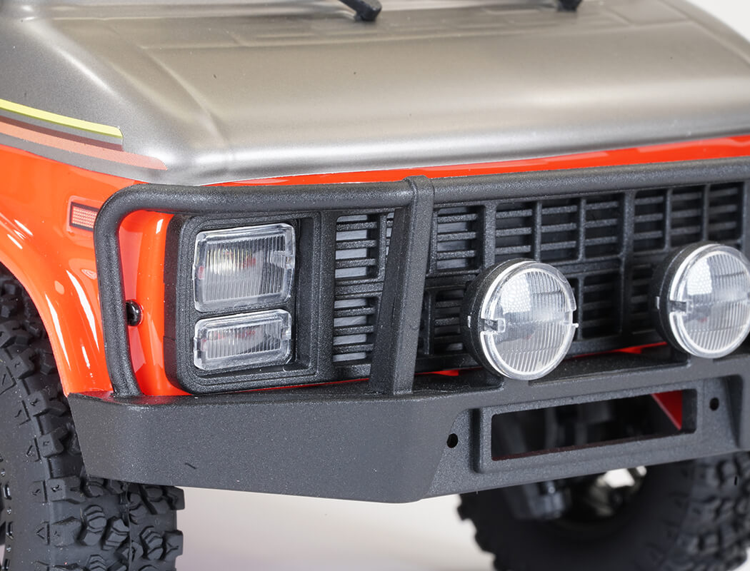On the outside, scale finishing such as moulded bumpers, full function LED light system mounted in moulded light buckets with lenses, wipers, mirrors, bead lock wheels and hidden body mounting make the Rock Van a real head turner. Furthermore, optional accessories such as inner body fenders, brass wheel weights and oil filled shock absorbers will take your rig to a whole new level of scale performance.