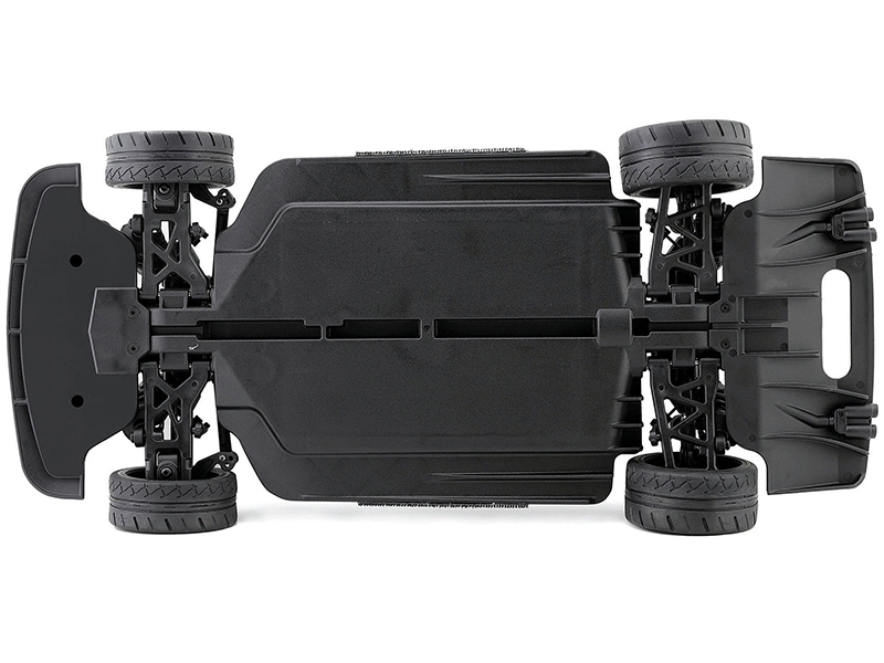 Oil filled shock absorbers, anti-roll bars and adjustable double wishbone suspension lets you tweak to suit your settings and tyre choice; either treaded rubber tyres for street racing, featuring 25mm wide front and 30mm wide rear for better stability at high speed or hard plastic boots on 6-spoke wheels for sideways drift driving.