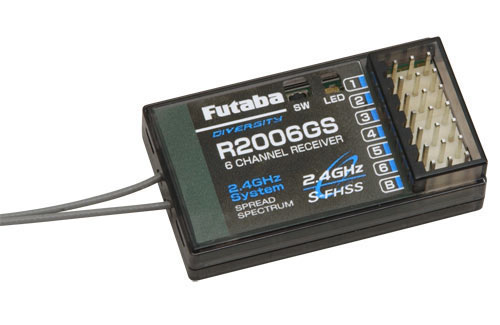 Supplied with the new 6JG radio set, the 6 channel R2006GS full range receiver is both small and light, and uses Futaba’s advanced FHSS transmission system for superior interference rejection. It can be used together with a wide range of Futaba transmitters, including 2PL, 3PL, 4PL, 4YFG and 6JG and can operate as both FHSS and S-FHSS.