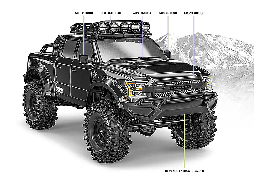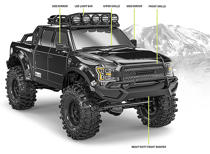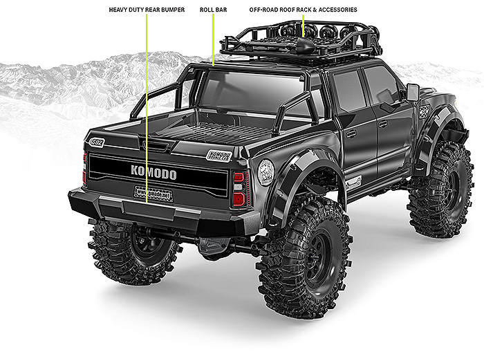 Komodo double cab body is made of 1.5mm thick high quality lexan and designed in pickup truck platform came out with strong and stylish detail body. Includes a grille, light bucket, side mirror, wiper grille and bumper and roll bars for off-road adventure concepts that add body detail, allowing you to tune to the look of a real off-road truck. Accessory parts are made of high-strength plastic and are extremely strong in impact and includes decals with realistic details.
