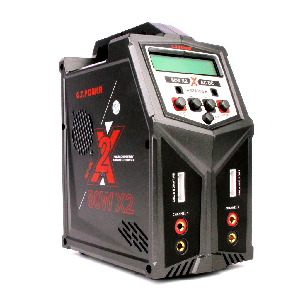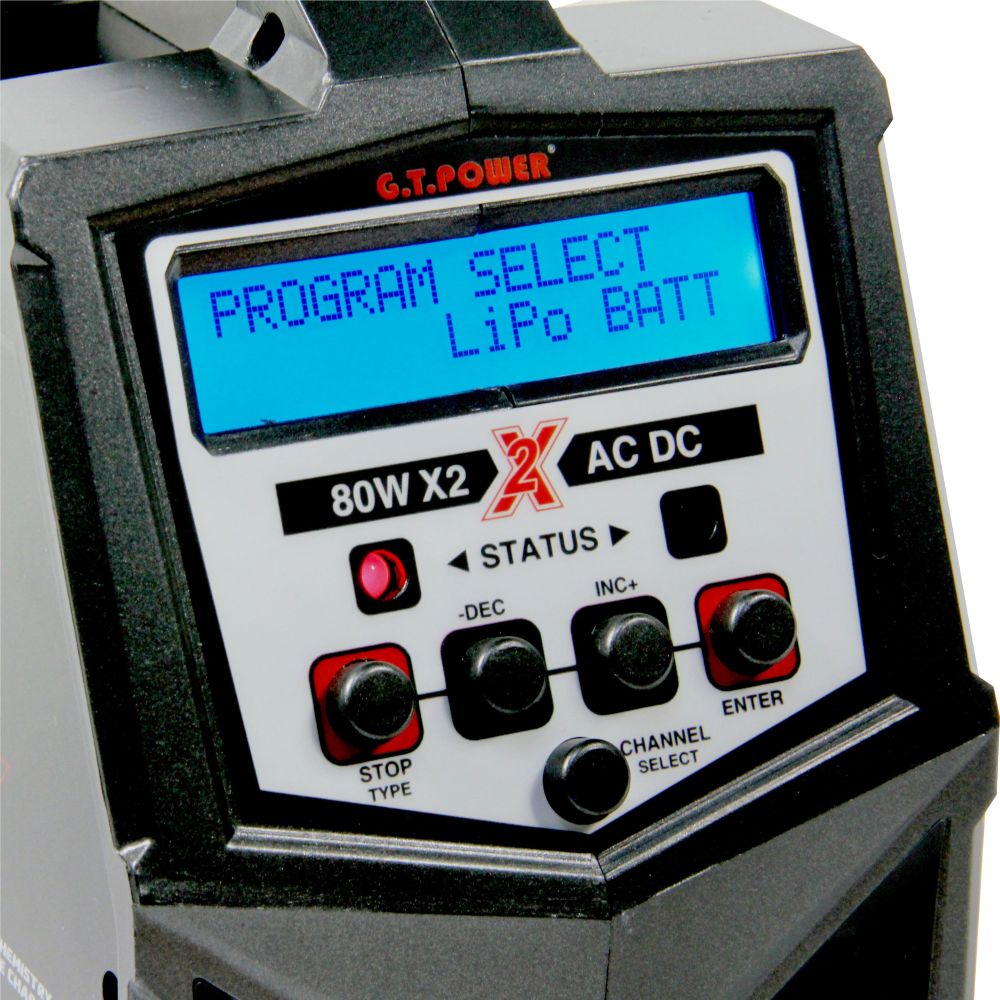 The GT Power X2 Multi-Chemistry professional charger / discharger offers a simple and safe solution to battery management. With two outputs, up to two batteries can be independently charged at the same time, using completely separate charge or discharge routines. With a choice of mains power or 11-18V DC input, the X2 is ideal for use at home or at the field. The backlit LCD screen makes it simple to select all of your charge parameters while also monitoring your battery’s status in any light. Compatible with today’s latest cell technologies, the X2 is the serious choice for charging LiPo, LiHV, LiIon, LiFe, NiMH, NiCd and Pb batteries