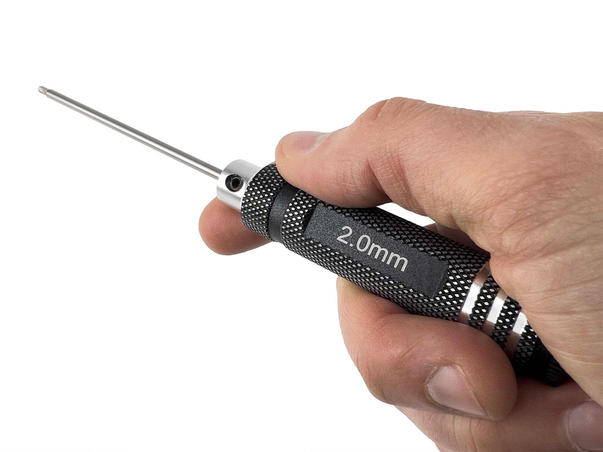 This set of Hex Drivers is a must have tool box essential for any modeler, whether you race, bash, sail or fly! Lightweight and ergonomic the handles feature a knurled finish to ensure a positive grip whilst in use whilst the plastic end cap prevents the body of the driver from collecting debris and dirt. In the set you get a 1.5mm, 2.0mm, 2.5mm and 3.0mm machined hex tipped driver. The brand logo is laser engraved on one side of the handle whilst on the flip side the tip size is noted for ease of identification. For even easier identification you can fit the optional coloured collar set (TL016) that provides an easy way to pick out the exact tool you need at a glance. Economically priced, this smart tool set can be complimented with the matching hex driver set (TL002N) ensuring you have the tools for the job at hand.