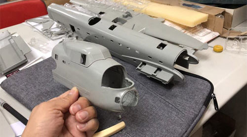 In production the fuselage and nose section will be injected without surface detail in crystal clear plastic first. The moulds will then be modified and surface detail added; an irreversible change meaning the clear version can never be produced again! Arrival in the UK expected October/November 2018.
