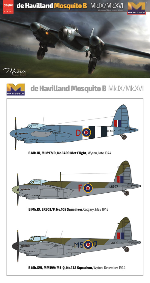 The Hong Kong Models 1/32 de Havilland Mosquito B Mk IX/XVI RAF from the plastic aircraft model kits range accurately recreates the famous real life British aircraft flown during World War II. Features markings for 3 RAF aircraft.