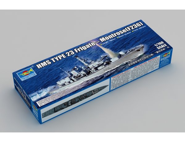 The Trumpeter HMS Montrose F236 Type 23 Frigate in 1/700 scale from the plastic ship model range accurately recreates the real life British ship from the Cold War.