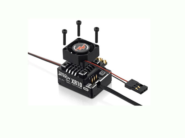 A built-in electronic switch combined with an external detachable switch effectively helps the XR10 Stock Spec avoid some flaws of ordinary or one-switch ESCs. The internal switch makes the wiring convenient, the external switch is really handy when the car shell isinstalled on and the built-in switch is no longer touchable.