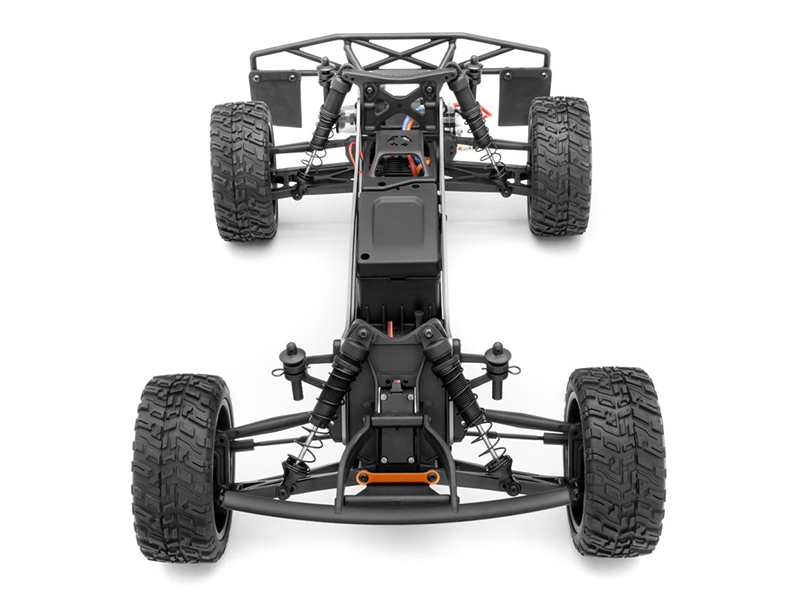 Underneath the sleek racing body of the Jumpshot SC V2, the chassis is a Savage-style TVP (Twin Vertical Plate) design for a super-stiff chassis and center-balanced weight. The modular design of the chassis gives you simple maintenance and durable crash protection for all the electronics. The battery is quickly accessed from underneath the truck, so changing batteries is extra-fast for more driving fun!