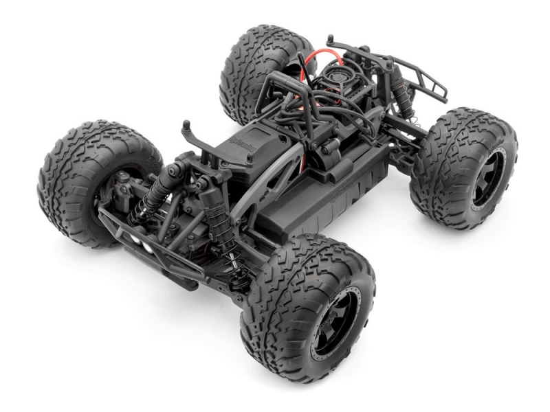 With its over-sized suspension design, the Savage XS FLUX is super-tough and capable of handling even the wildest bashing action! Extra-thick arms and shock towers, plus solid upper links combined with all-steel hardware make the Savage XS chassis the ultimate mini-monster bashing machine! Sturdy yet flexible wide bumpers at both ends are fitted with skid plates to give the truck extra durability no matter what scrapes you get into!