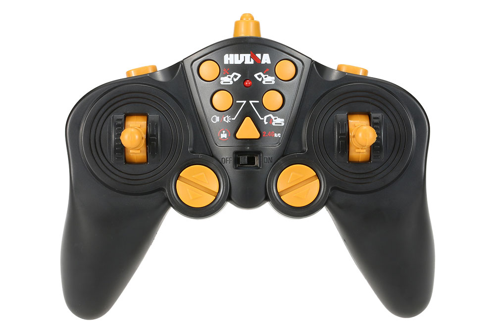 The 2.4GHz transmitter allows for 16 seperate function, allowing control of all of the models joints including 680° cab rotation. 2.4GHz technology allows for multiple models to run at the same time without interference. The transmitter can also be programmed to allow you to perform a series movements with just one button.