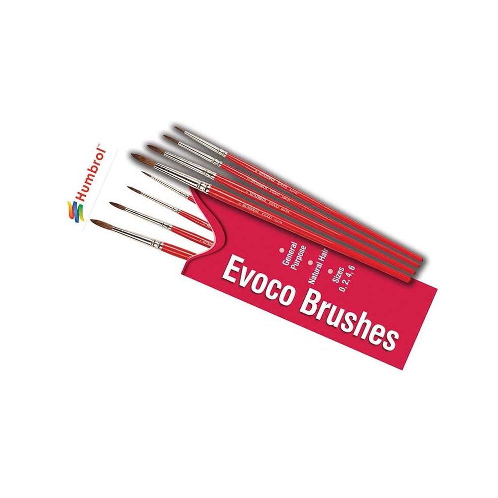 This pack contains size 0, 2, 4 and 6 Humbrol Evoco Brushes.